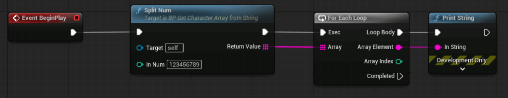 数字を文字列にして「Get Character Array From String」に突っ込むと