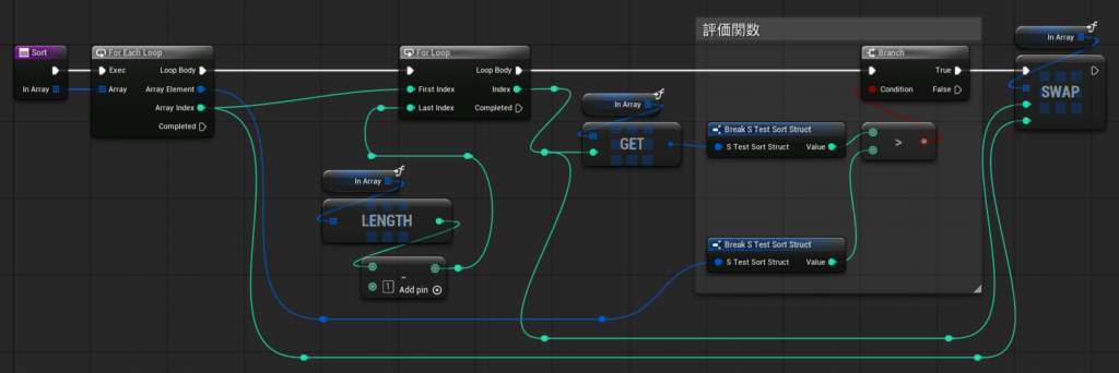 バブルソートをBP上で表現することで、構造体もソートすることができます。