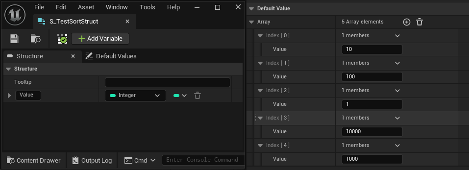 上記の画像はint32のValueを昇順にする計算です。